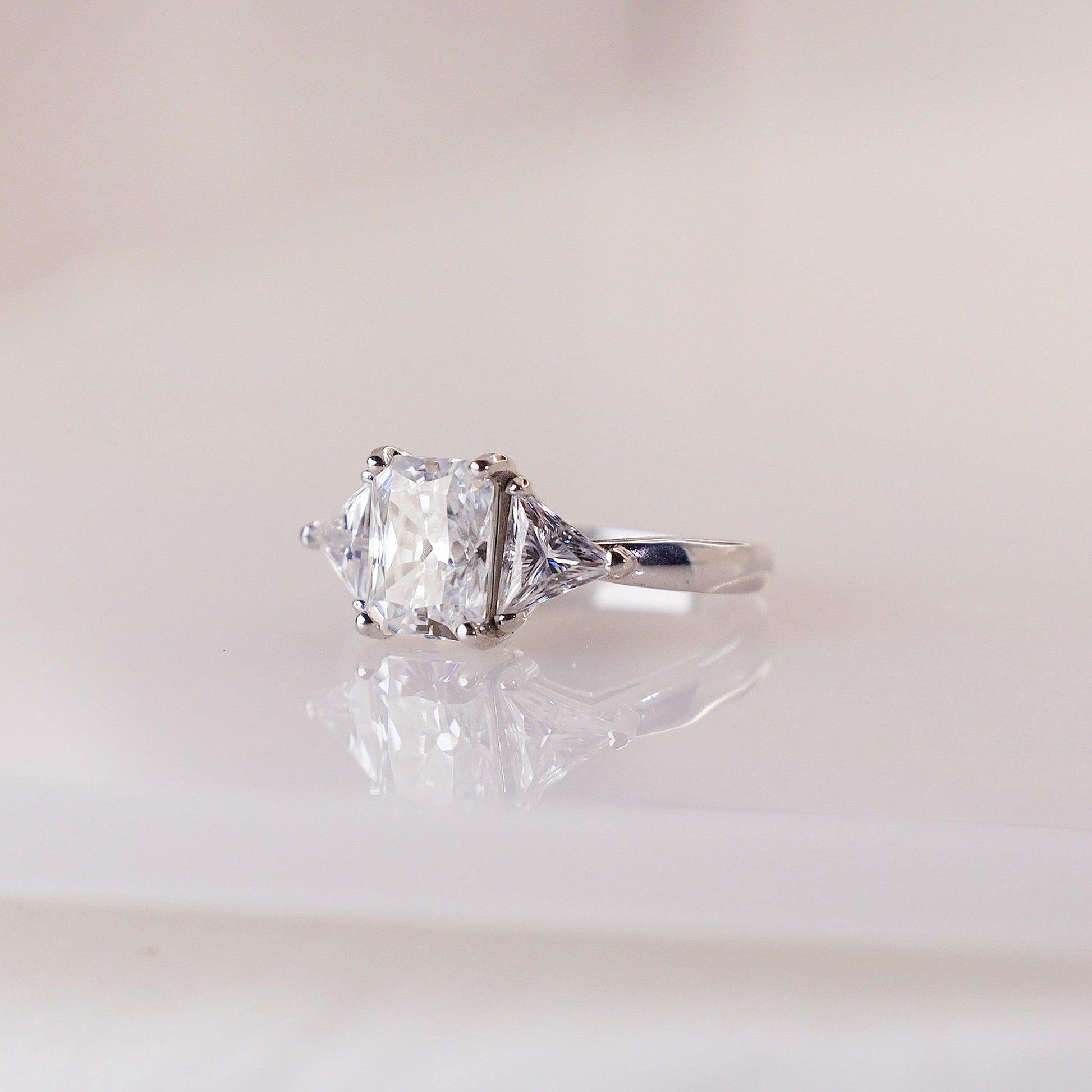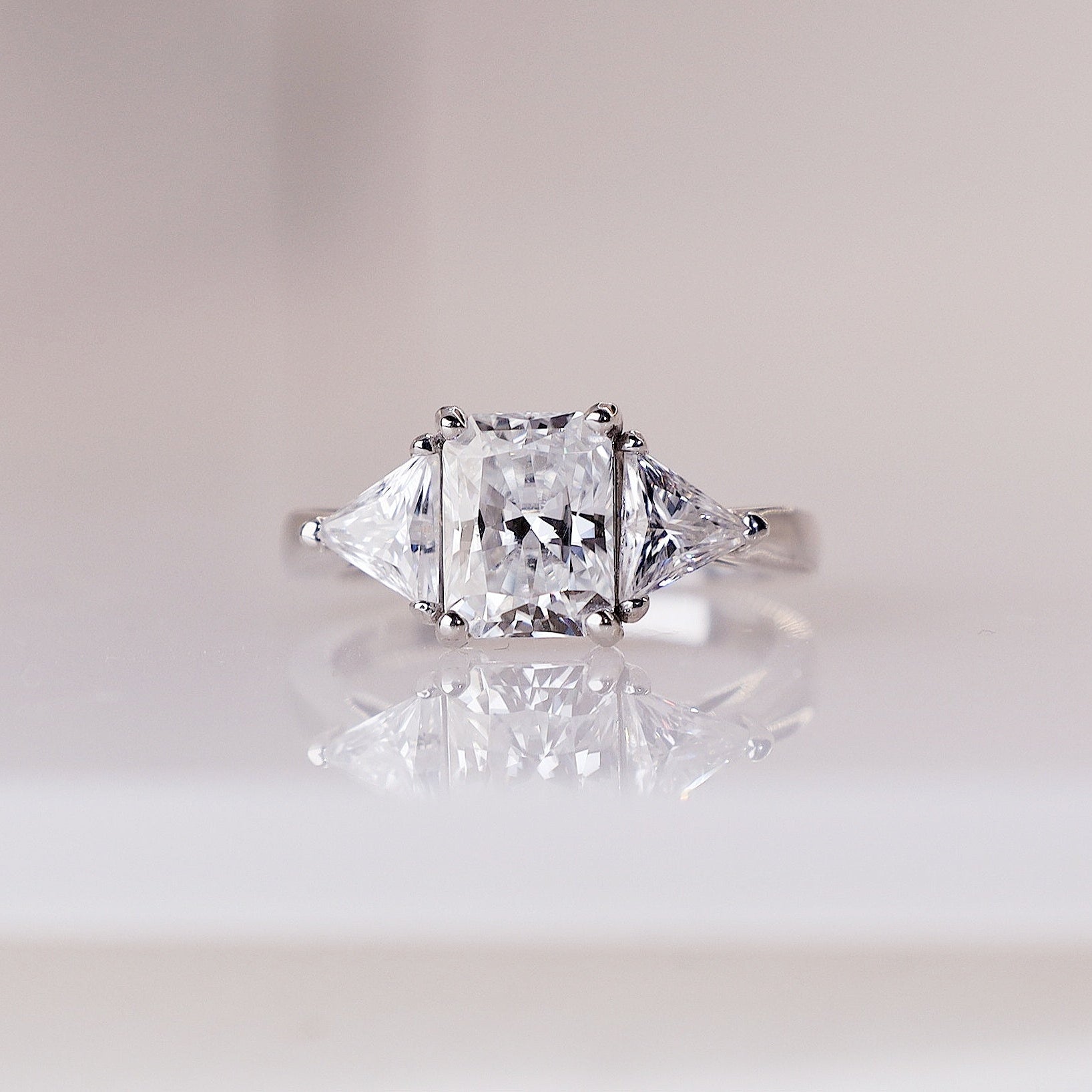 A big three-stone ring symbolizes past, present, and future, making it a timeless and meaningful piece. With a bold center stone flanked by two dazzling side stones, it exudes elegance, luxury, and brilliance. Perfect for those who love statement jewellery with deep significance.